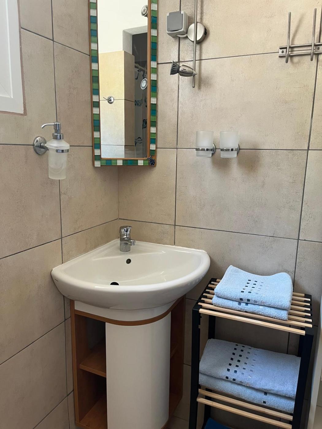 One-Bedroom Apartment. Boasting 1 bedroom, this apartment has 1 bathroom with a hairdryer, a seating area and terraceyou can relax. The apartments kitchenette, which features a refrigerator and kitchenware, is available for cooking and storing food. The apartment has air conditioning, a tea and coffee maker, as well as a balcony with sea views. The unit offers 2 beds.