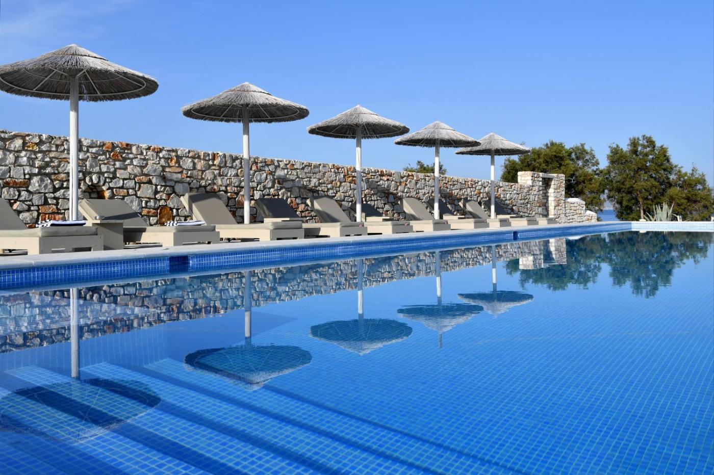 Boasting a balcony with sea views, a private beach area and pool with a view, Ambelas Mare Apartments can be found in Ambelas, close to Aspros Gremos Beach and 3.1 km from Wine Museum of Naousa. This beachfront property offers access to a terrace and free private parking. Rooms include a patio with views of the mountain.