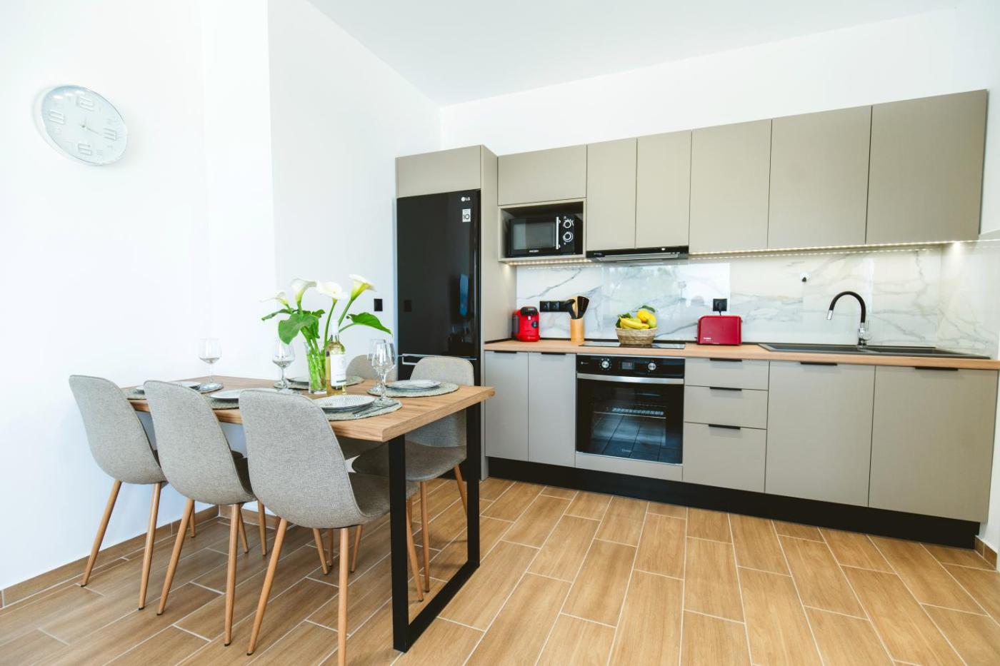 The holiday home is fitted with 2 bedrooms, 1 bathroom, bed linen, towels, a flat-screen TV with satellite channels, a dining area, a fully equipped kitchen, and a terrace with sea views. A private entrance leads gueststhe holiday home,they can enjoy some wine or champagne and fruits. The property has an outdoor dining area.