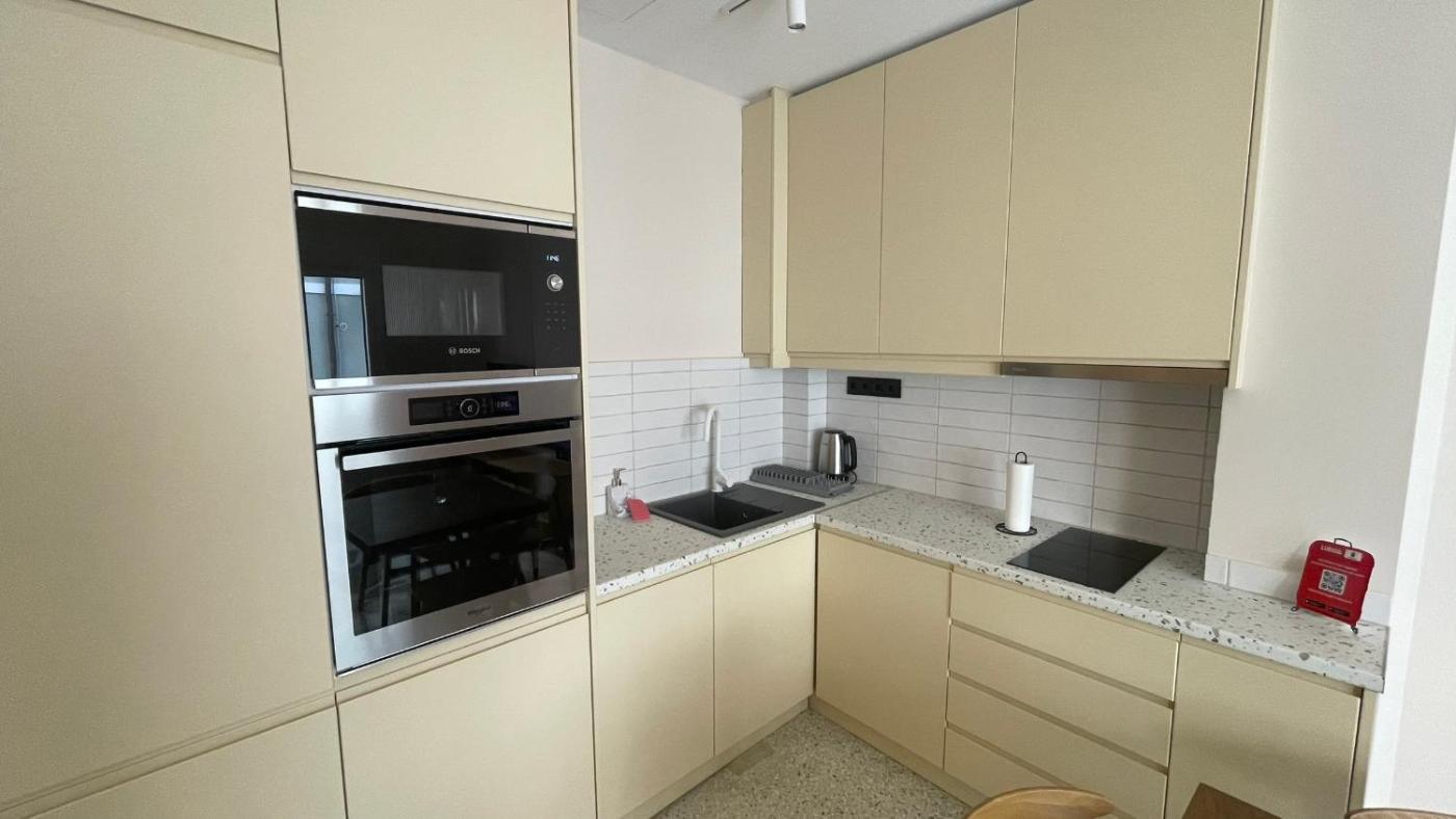 One-Bedroom Apartment. Guests can make meals in the kitchen that is equipped with a stovetop, a refrigerator, a dishwasher and kitchenware. This apartment is air-conditioned and features a seating area with a flat-screen TV, a washing machine, a private entrance, a tea and coffee maker, as well as a dining area. The unit offers 2 beds.