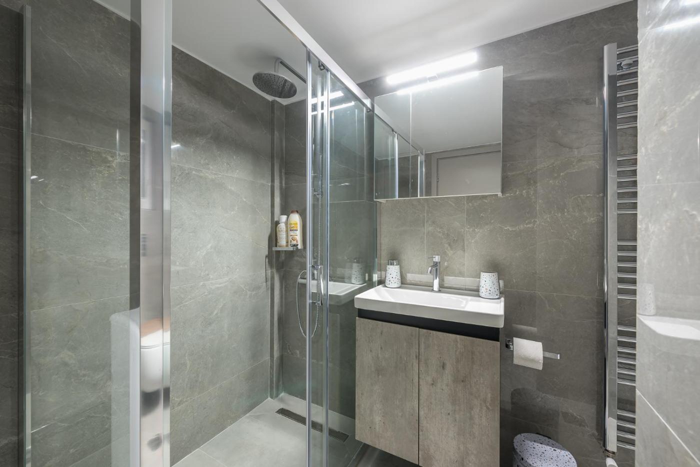 One-Bedroom Apartment. This apartment consists of 1 living room, 1 separate bedroom and 1 bathroom with a walk-in shower and free toiletries. In the fully equipped kitchen, guests will find a stovetop, a refrigerator, kitchenware and an oven. This apartment is air-conditioned and features a seating area with a flat-screen TV, a washing machine, a tea and coffee maker, a dining area, as well as a wardrobe. The unit offers 2 beds.