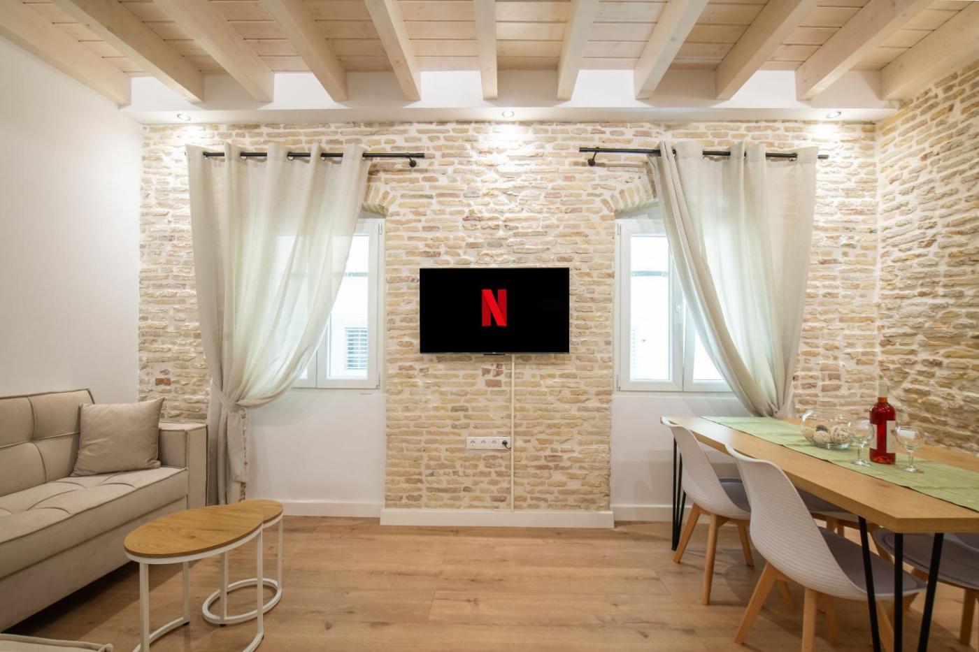 Two-Bedroom Apartment. The spacious apartment features air conditioning, a washing machine, as well as a shared bathroom boasting a bath and a shower. In the well-fitted kitchen, guests will find a stovetop, a refrigerator, a dishwasher and kitchenware. The apartment provides a private entrance, a tea and coffee maker, a seating area, a dining area and a flat-screen TV. The unit has 4 beds.