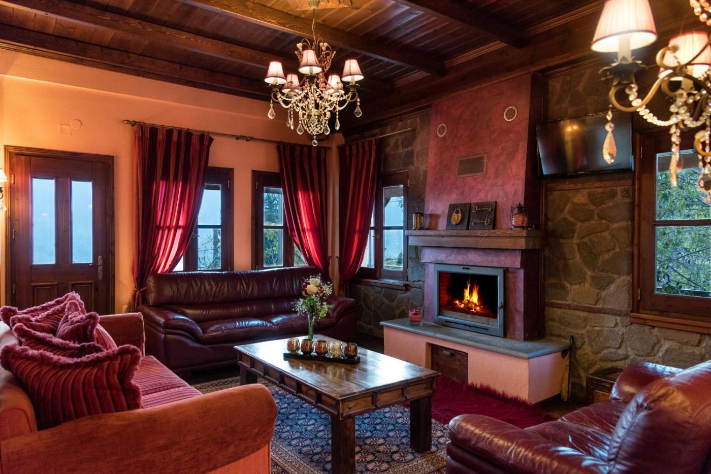 Double Room with Fireplace. Decorated in stone and wood, this double room offers a fireplace and private balcony overlooking the tops of Mount Pindos and Agrafa. ;