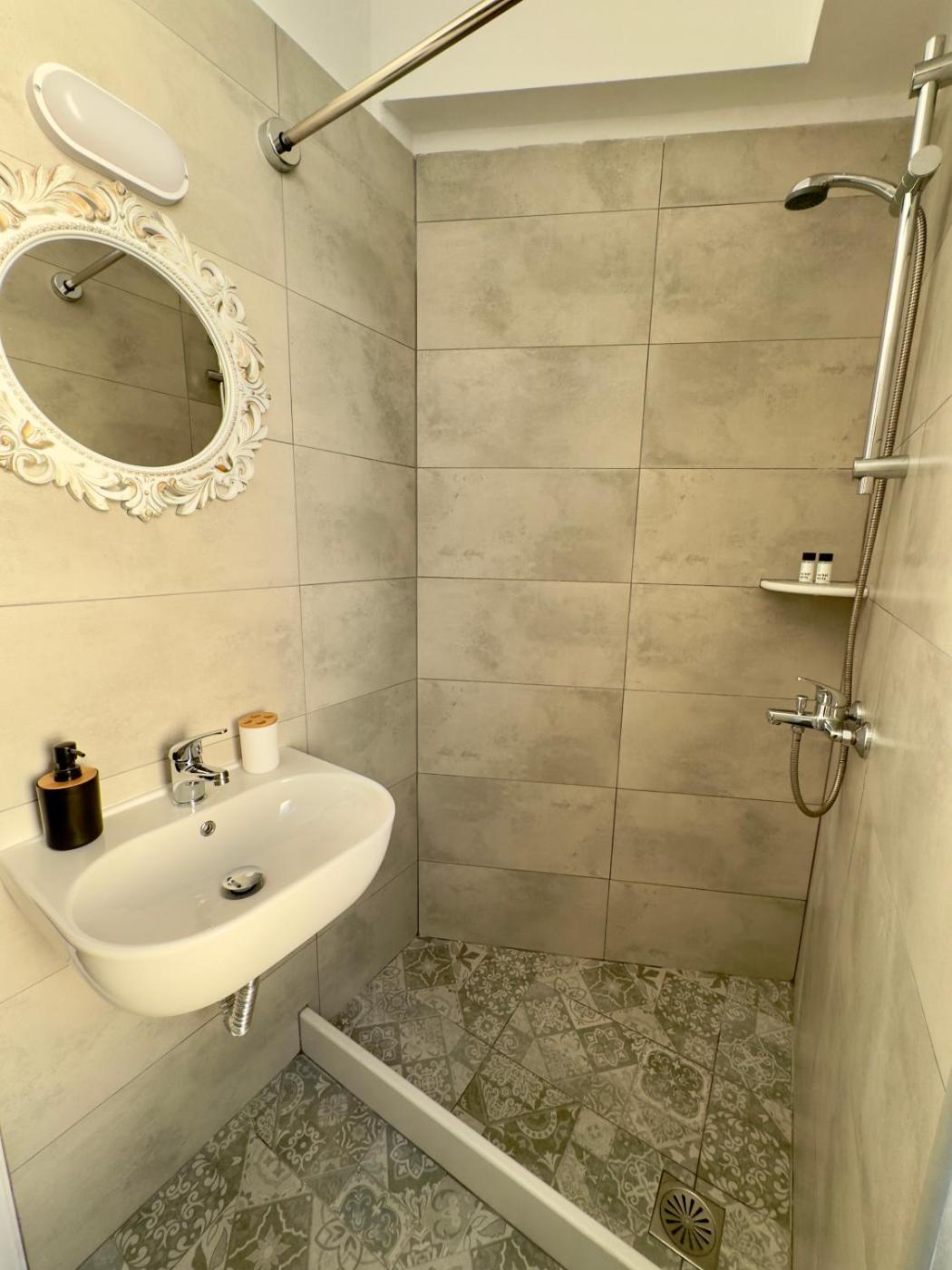 Small Double Room. Featuring free toiletries, this double room includes a private bathroom with a shower and a hairdryer. The air-conditioned double room features a flat-screen TV, a tea and coffee maker, a wardrobe, parquet floors as well as sea views. The unit has 1 bed. ;