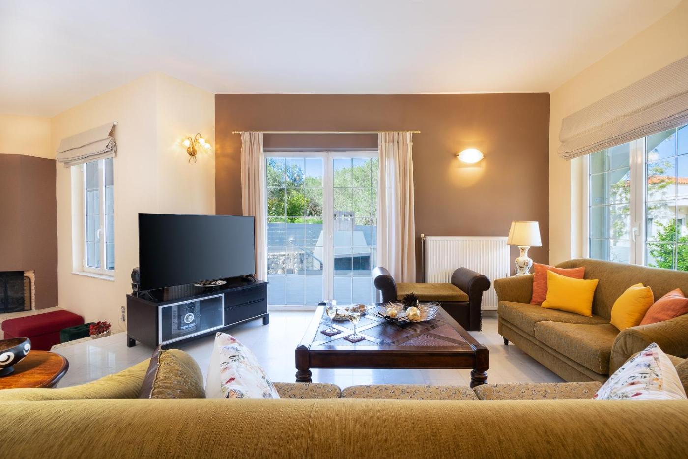 Three-Bedroom Villa. This villas standout features are the pool with a view and fireplace. Featuring a private entrance, this air-conditioned villa consists of a kitchen, 3 bedrooms and 3 bathrooms with a bath and a shower. Meals can be prepared in the well-fitted kitchen, which is equipped with a stovetop, a refrigerator, a dishwasher and an oven. Boasting a terrace with garden views, this villa also provides a washing machine and a flat-screen TV with streaming services. The unit offers 4 beds.