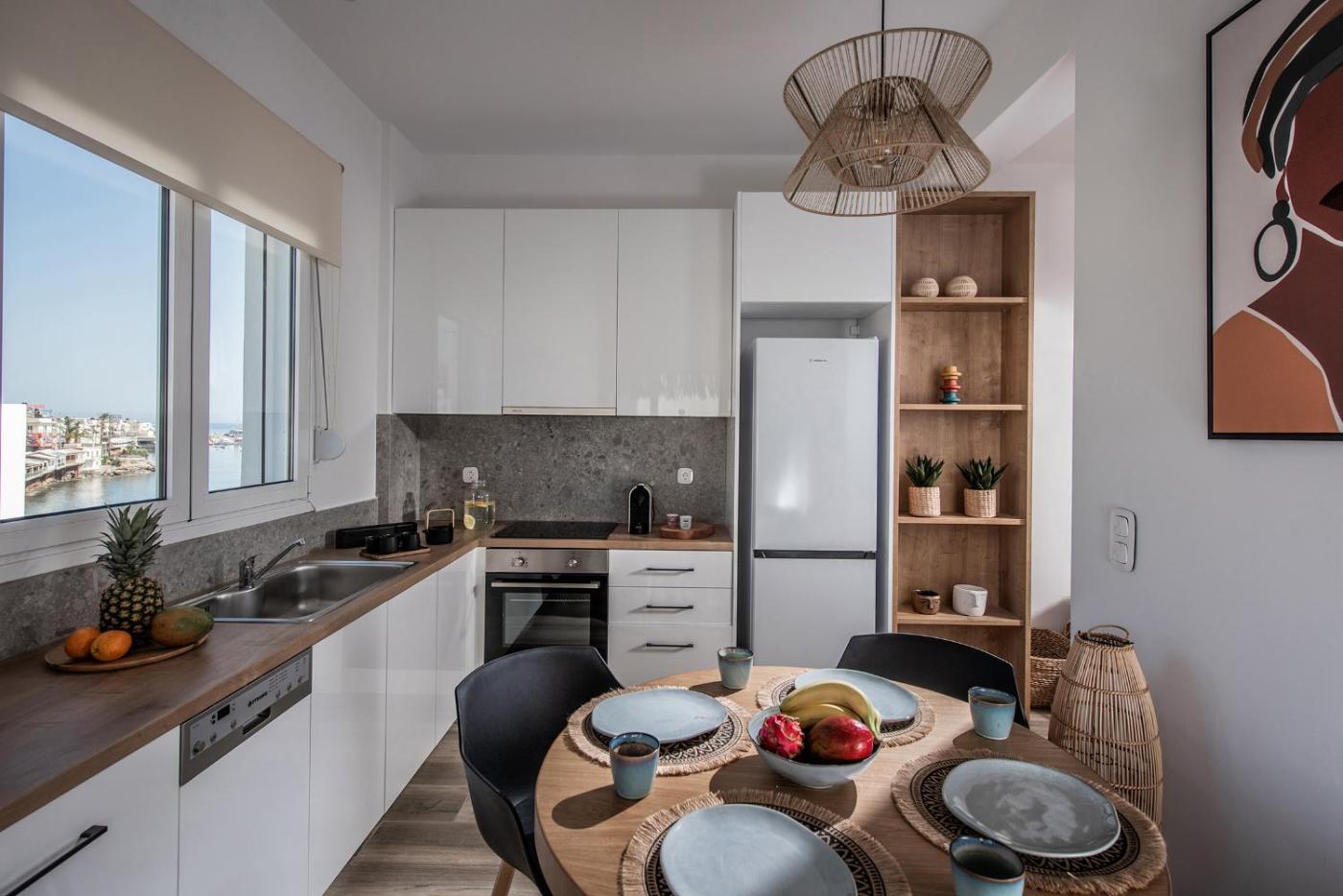 Situated conveniently in the centre of Hersonissos, Khroma Luxury Suite 2 Beach front apartment with private mini pool jacuzzi offers a terrace, air conditioning, free WiFi and flat-screen TV. The property features sea and mountain views, and is a few steps from Limenas Hersonissou Beach. The accommodation offers airport transfers, while a bicycle rental service is also available.