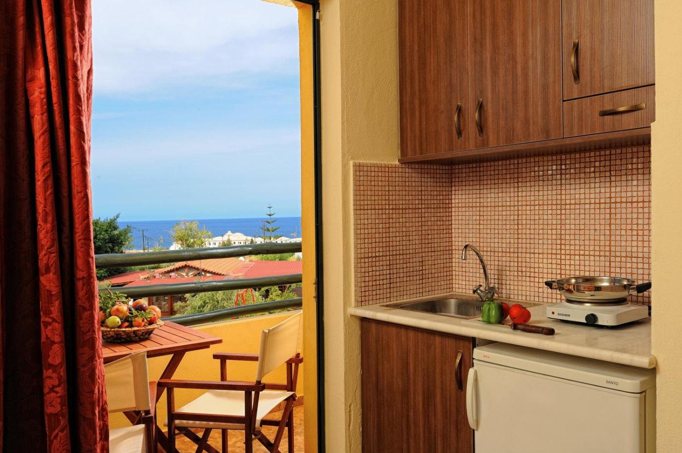 Studio with Sea View. In the fully equipped kitchenette, guests will find a refrigerator, kitchenware, a toaster and an electric kettle. The studio offers air conditioning, a wardrobe, a terrace with sea views as well as a private bathroom featuring a shower. The unit offers 1 bed. ;