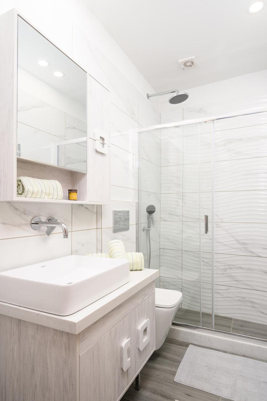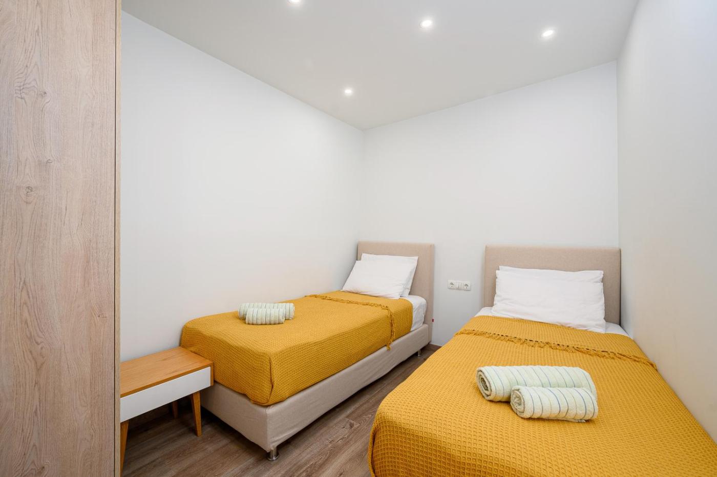 Three-Bedroom Apartment. This spacious apartment comes with 1 living room, 3 separate bedrooms and 2 bathrooms with a walk-in shower and free toiletries. Guests can make meals in the kitchen that features a stovetop, a refrigerator, kitchenware and an oven. The air-conditioned apartment features a flat-screen TV with cable channels, a washing machine, a private entrance, soundproof walls as well as garden views. The unit has 4 beds.
