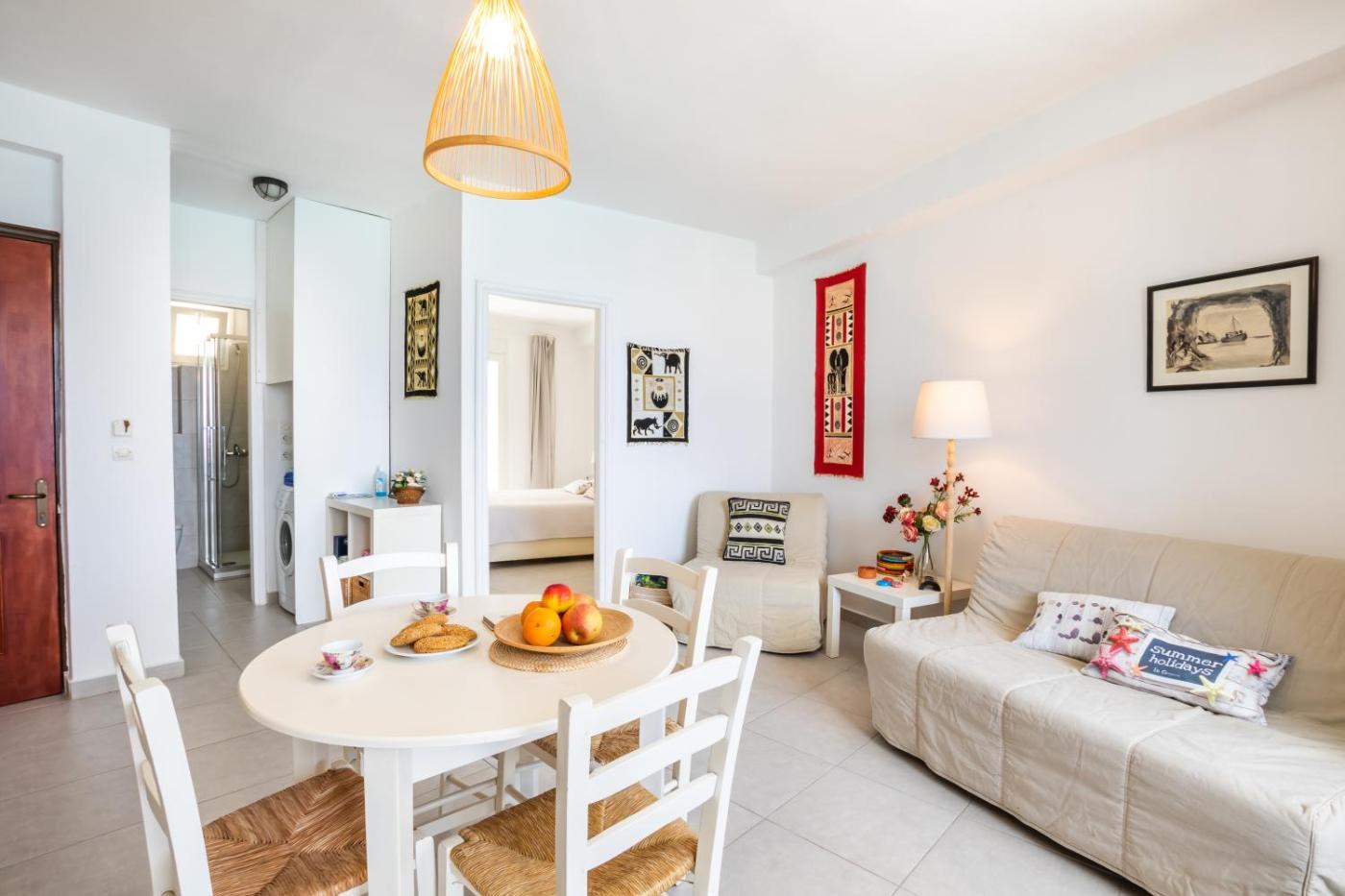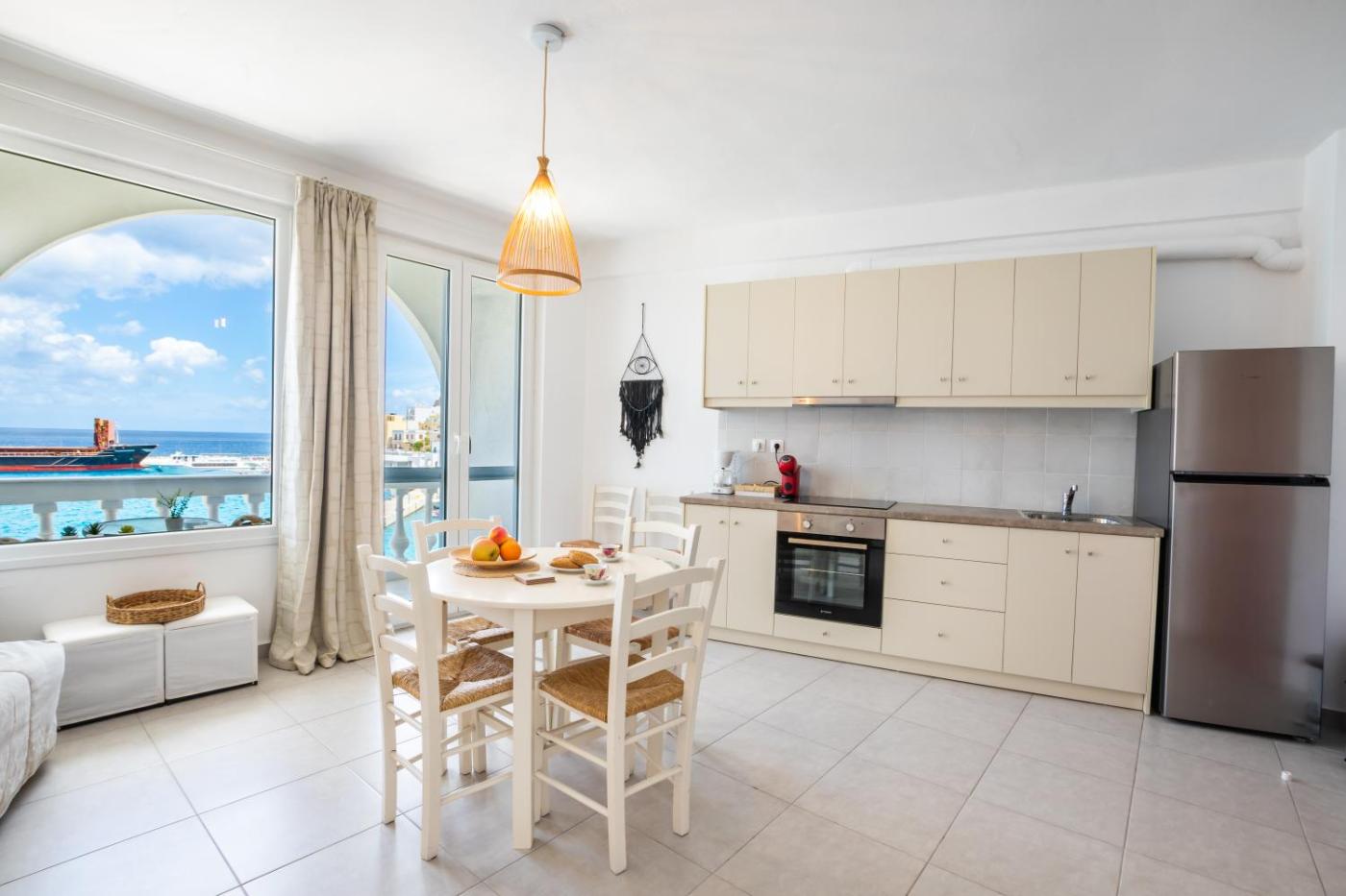 One-Bedroom Apartment. Featuring a private entrance, this air-conditioned apartment is comprised of 1 living room, 1 separate bedroom and 1 bathroom with a hairdryer. The well-fitted kitchen features a stovetop, a refrigerator, kitchenware and an oven. Boasting a balcony with sea views, this apartment also offers a washing machine and a flat-screen TV. The unit offers 2 beds.