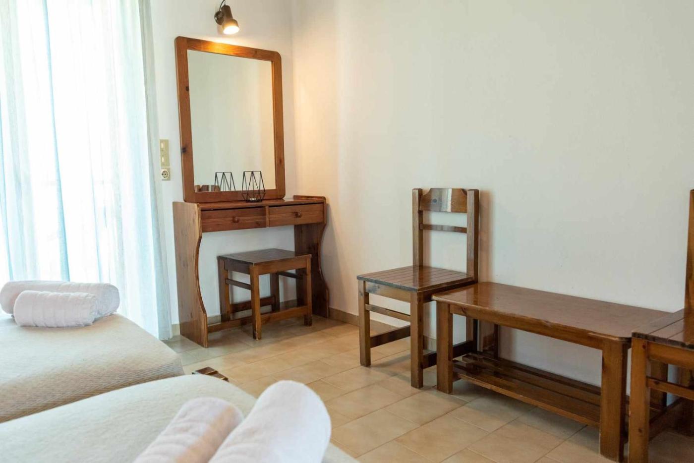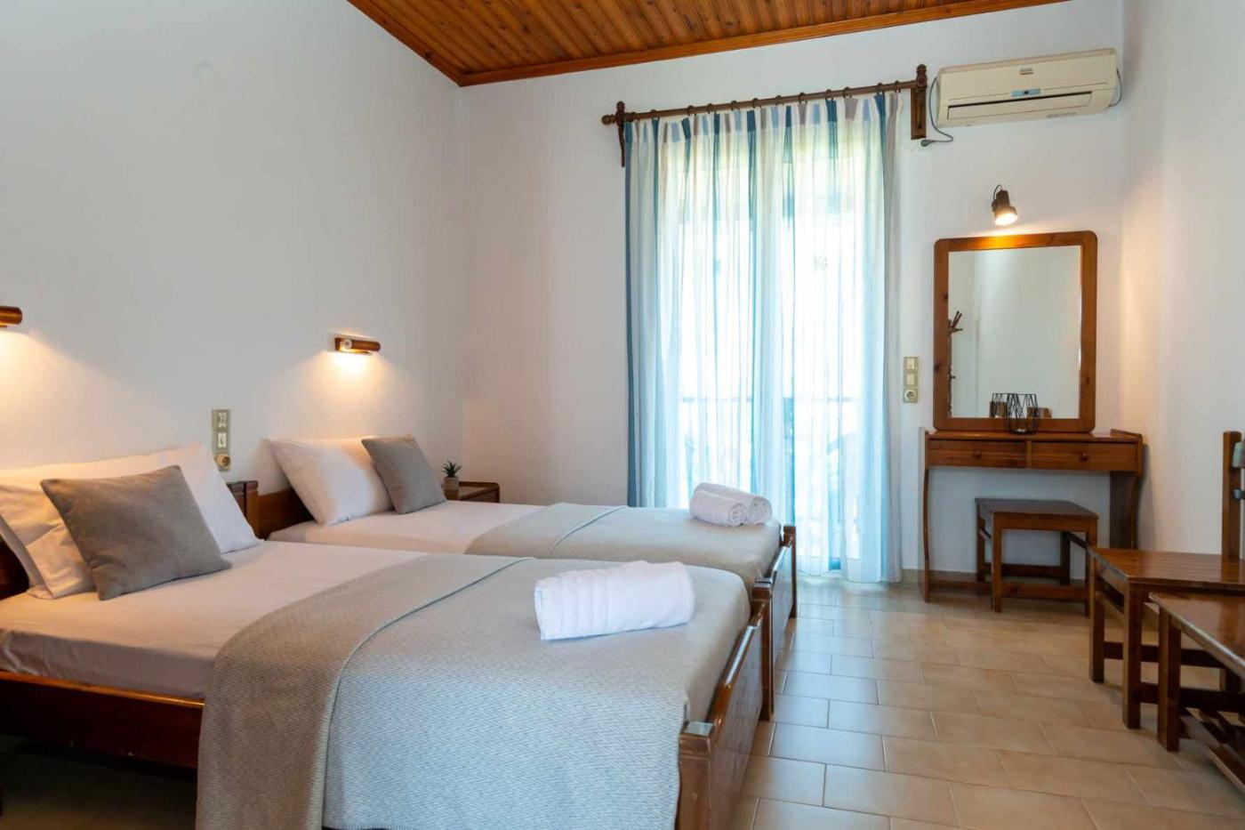 Budget Double Room. The well-equipped kitchenette features a stovetop, a refrigerator, kitchenware and an electric kettle. The double room provides air conditioning, a wardrobe, a balcony with garden views as well as a private bathroom featuring a shower. The unit offers 2 beds.