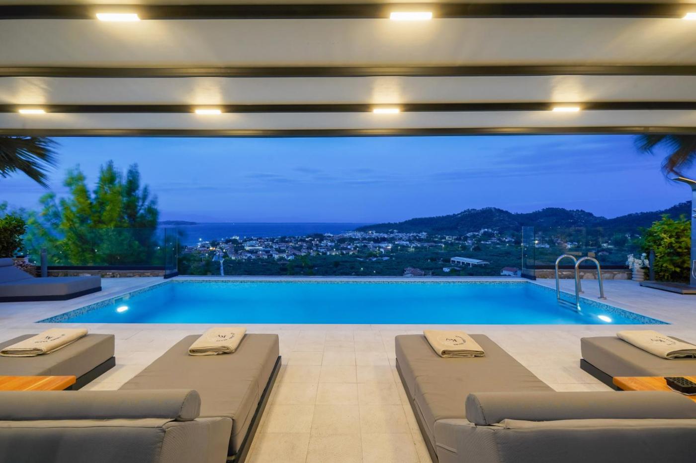 Villa with Private Pool. This villas standout feature is the pool with a view. Boasting a private entrance, this air-conditioned villa includes 1 living room, 5 separate bedrooms and 3 bathrooms with a shower and a hairdryer. Guests will find a stovetop, a refrigerator, a dishwasher and kitchenware in the well-fitted kitchenette. The villa also features a barbecue. Among the room amenities are a coffee machine, a dining area, a wardrobe as well as a patio and sea views. The unit has 5 beds. ;