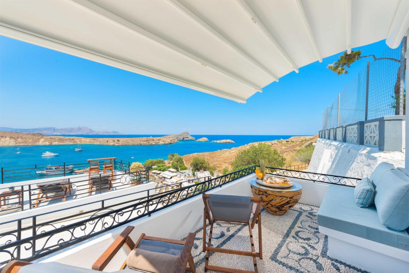 Superior Studio Apartment with Sea View. Located above the main beach of Lindos, this studio apartment is elegantly decorated with beamed ceilings, wooden floors, well-chosen furnishings and earthy colours. It comes with a well-equipped kitchenette, and a modern bathroom with shower cabin, bathrobes and slippers. It enjoys sea view. Please note that this room type cannot accommodate children.
