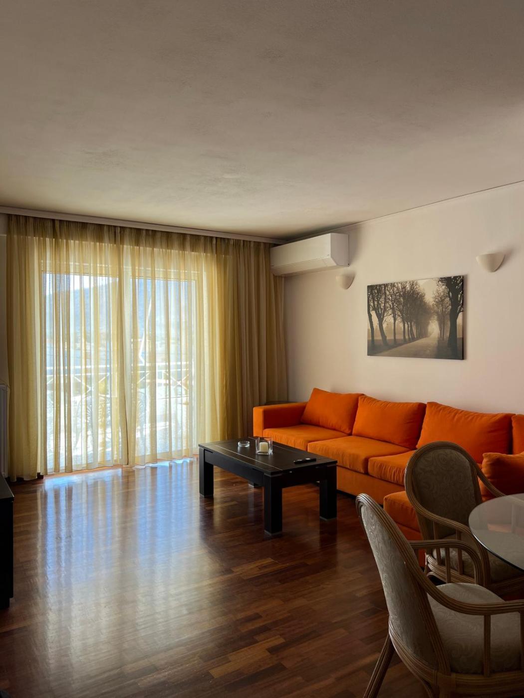 One-Bedroom Apartment. This spacious apartment is comprised of 1 living room, 1 separate bedroom and 1 bathroom with a bath and free toiletries. The fully equipped kitchen features a refrigerator, kitchenware and an oven. The air-conditioned apartment offers a flat-screen TV, a tea and coffee maker, a dining area, a wardrobe as well as city views. The unit offers 2 beds.