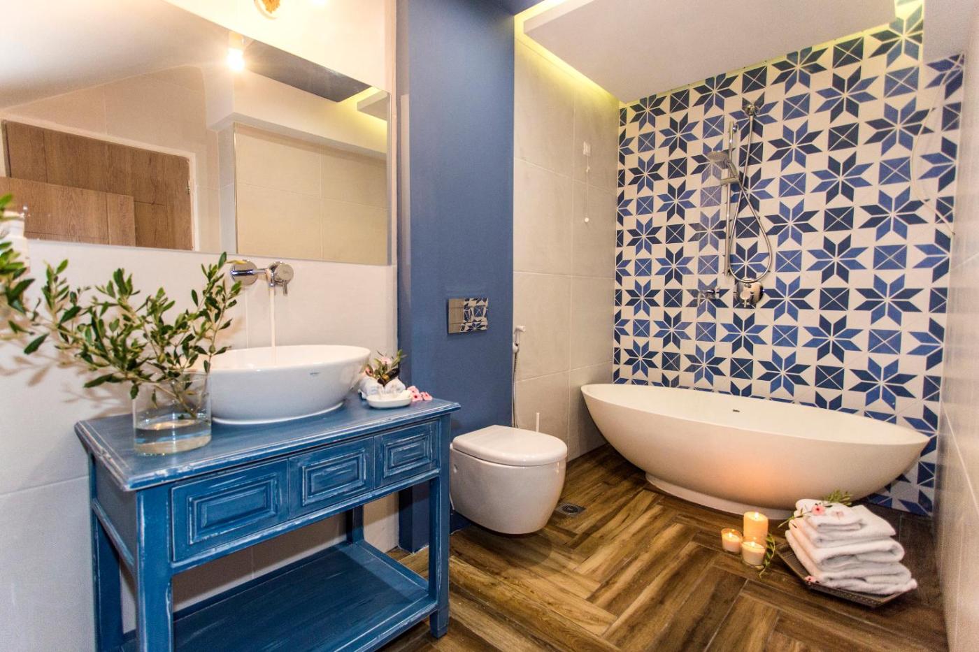 Wedding Suite. Guests will have a special experience as the apartment offers a hot tub. Featuring a private entrance, this air-conditioned apartment consists of 1 living room, 1 separate bedroom and 1 bathroom with a walk-in shower and a bidet. Guests will find a stovetop, a refrigerator, kitchenware and a tea and coffee maker in the fully equipped kitchen. The apartment also offers a barbecue. Boasting a terrace with sea views, this apartment also provides soundproof walls and a flat-screen TV with cable channels. The unit offers 2 beds. ;