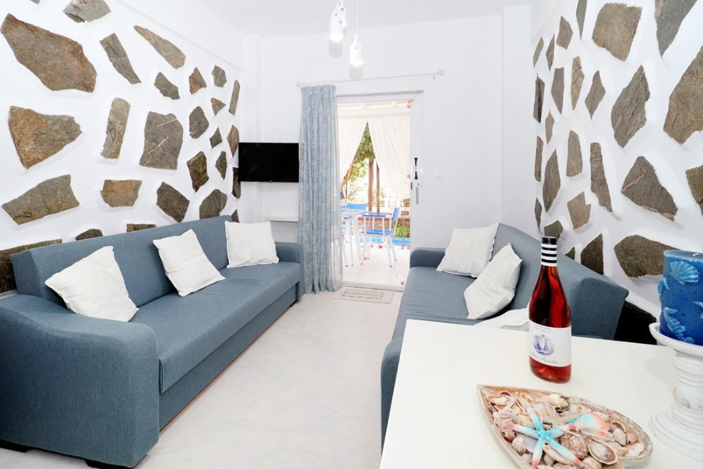 Situated in Pefkohori, 500 metres from Pefkohori Beach, Blue Paradise features air-conditioned accommodation with a terrace and free WiFi. With garden views, this accommodation offers a balcony. Outdoor seating is also available at the holiday home.