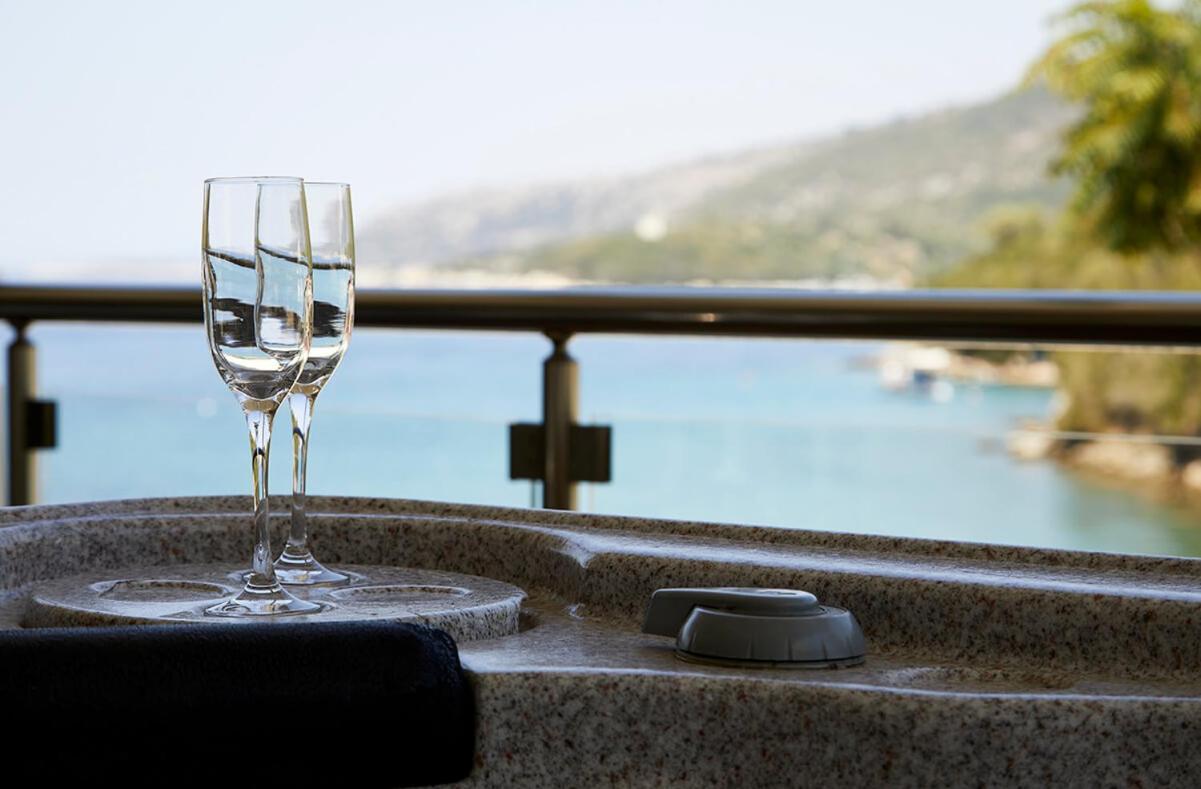 Four-Bedroom Villa - Beach Front. Offering a private pool and a hot tub, this beachfront and air-conditioned, 4-bedroom villa features a balcony and terrace with Ionian Sea, garden and pool views. It includes: -a fully equipped kitchen -a private bathroom with spa bath -a living room with flat-screen, satellite TV -free WiFi. ;