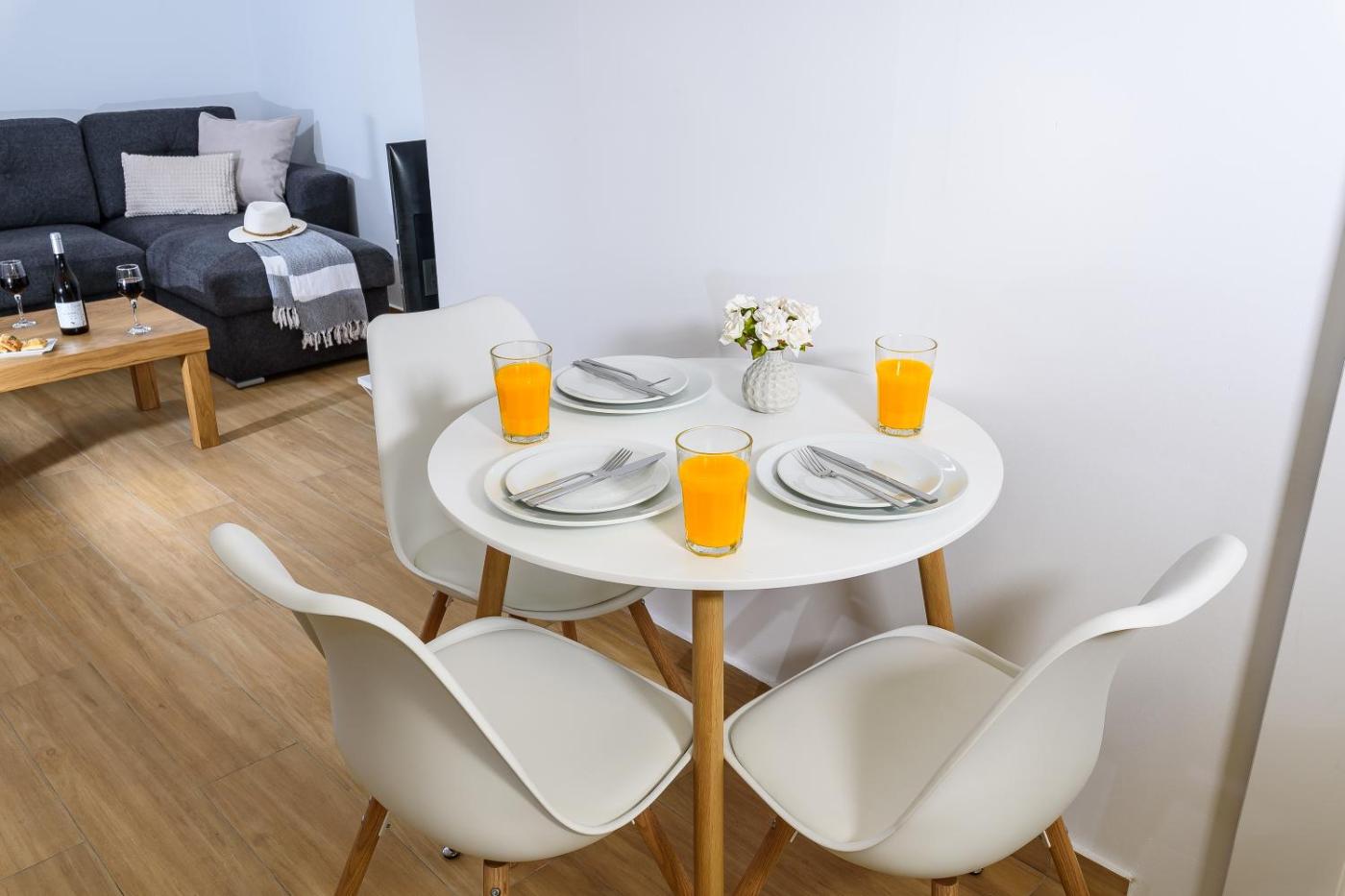 One-Bedroom Apartment. The apartments kitchen, which features a refrigerator and kitchenware, is available for cooking and storing food. The apartment provides air conditioning, a washing machine, a private entrance, a coffee machine and a flat-screen TV with cable channels. The unit offers 2 beds.