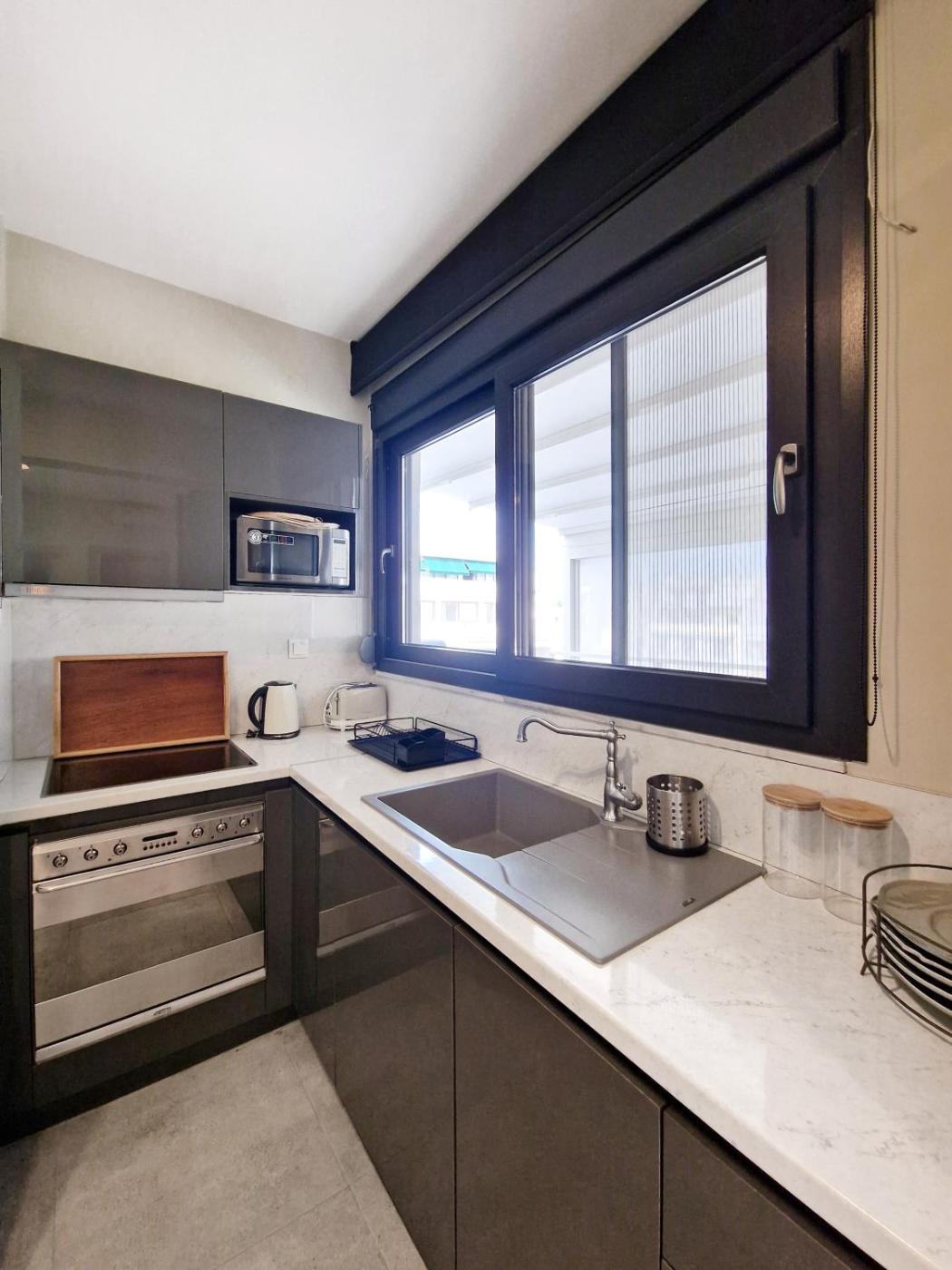 One-Bedroom Apartment. Guests can make meals in the kitchen that features a stovetop, a refrigerator, a dishwasher and kitchenware. The spacious air-conditioned apartment features a flat-screen TV, a washing machine, soundproof walls, a coffee machine as well as city views. The unit has 2 beds.