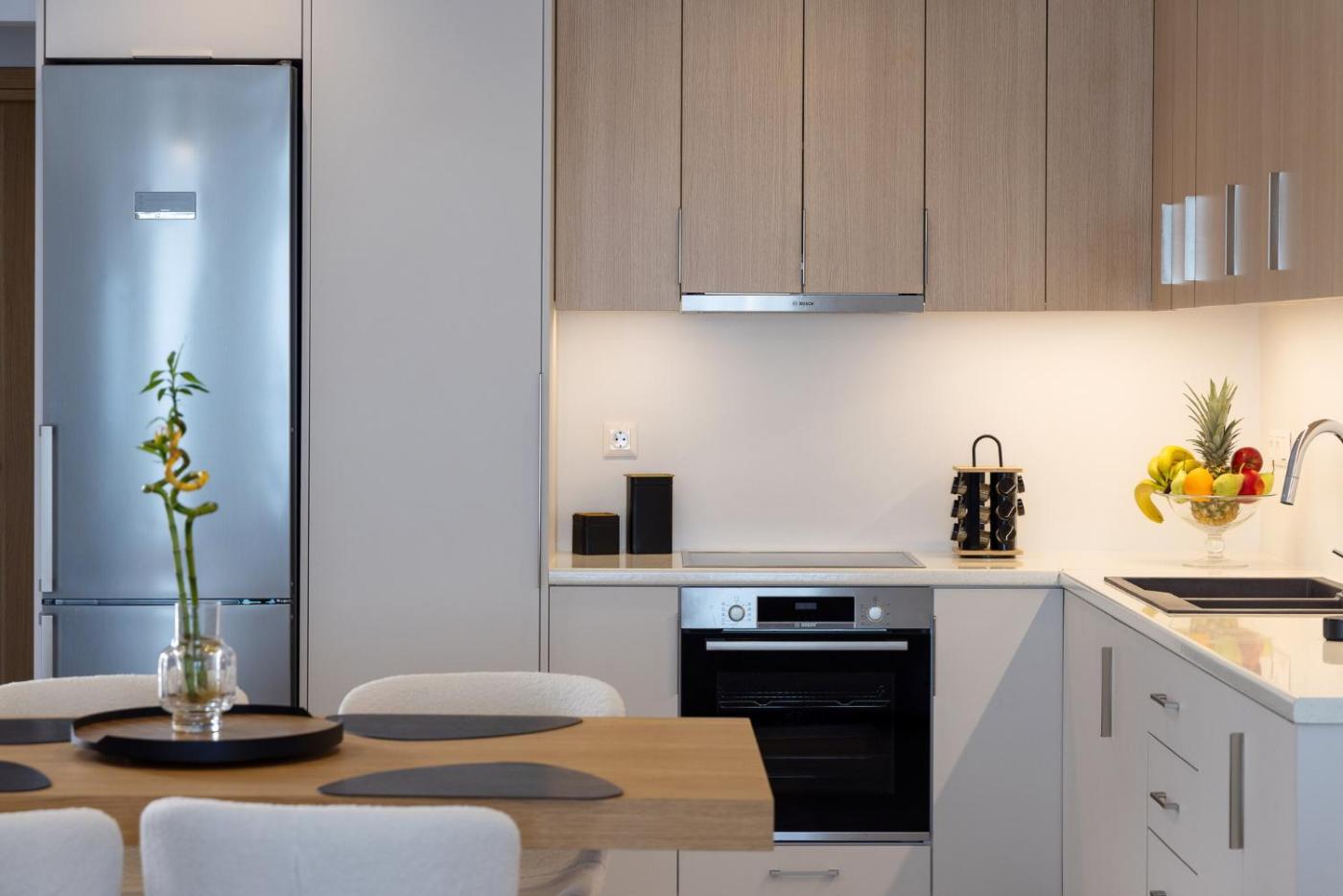 One-Bedroom Apartment. In the well-fitted kitchen, guests will find a stovetop, a refrigerator, kitchenware and an oven. The spacious air-conditioned apartment features a flat-screen TV with streaming services, a washing machine, a private entrance, soundproof walls as well as sea views. The unit has 1 bed.