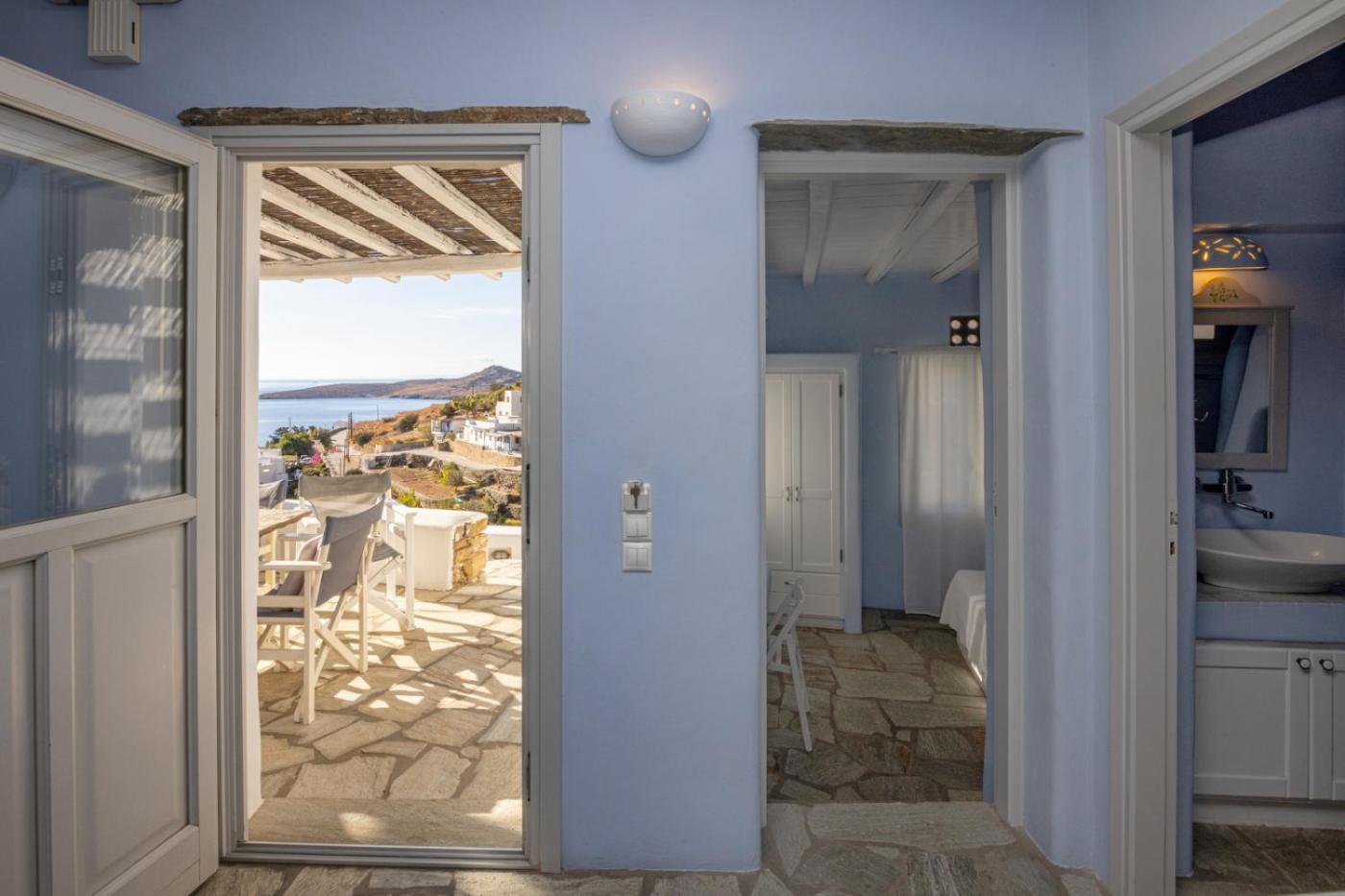 Studio with Sea View (2 Adults). This traditionally decorated studio offers free Wi-Fi and balcony overlooking the Aegean Sea. Features a kitchenette with cooking hobs, oven and fridge. An LCD TV and Korres toiletries are provided. ;