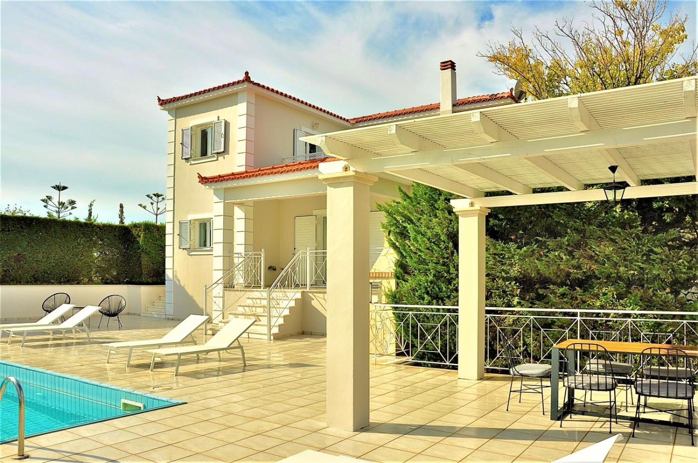 Book private villas in Greece, luxury estates, country manors, poolside homes, gated properties, panoramic retreats, olive grove havens, and cliffside dwellings throughout Greece's mainland and islands for premium rentals and exclusive getaways. Boutique estates feature pet-friendly villas, large group houses, wedding venues with private pools, infinity pools, outdoor jacuzzis, barbecue areas, chef kitchens, home cinemas, fitness gyms, tennis courts, horse riding stables, and golf course proximity. Book!
