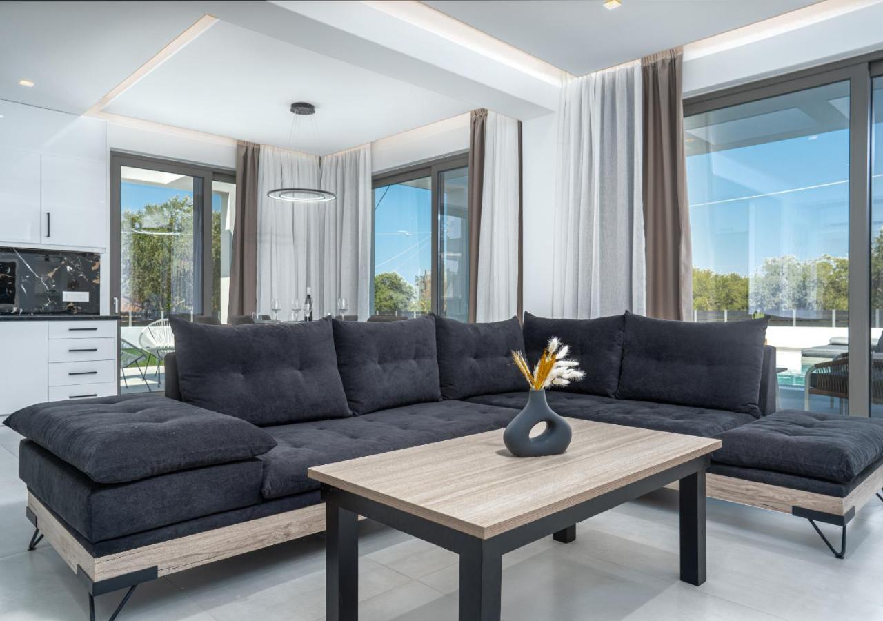 Superior Villa. Guests will have a special experience as this villa provides a private pool and a fireplace. Boasting a private entrance, this air-conditioned villa includes 1 living room, 4 separate bedrooms and 5 bathrooms with a walk-in shower and a bath. Guests will find a stovetop, a refrigerator, a dishwasher and kitchenware in the well-fitted kitchen. The villa also features a barbecue. The spacious villa offers a washing machine, soundproof walls, a minibar as well as a terrace with sea views. The unit has 7 beds.