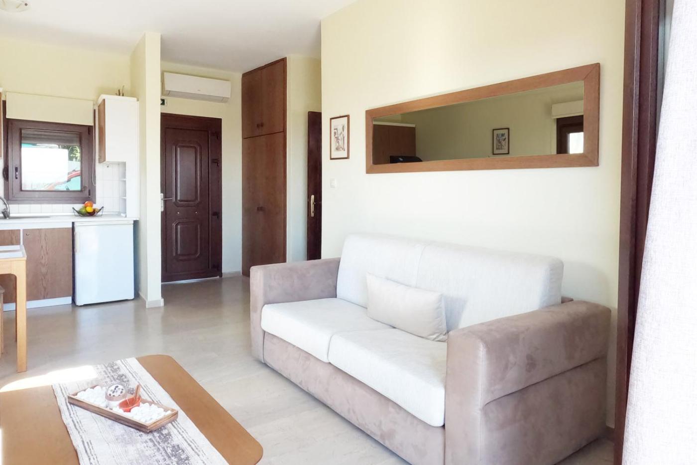 One-Bedroom Apartment. This air-conditioned apartment includes 1 living room, 1 separate bedroom and 1 bathroom with a shower. The apartments kitchenette is available for cooking and storing food. Boasting a balcony with sea views, this apartment also offers a seating area and a flat-screen TV. The unit has 2 beds.