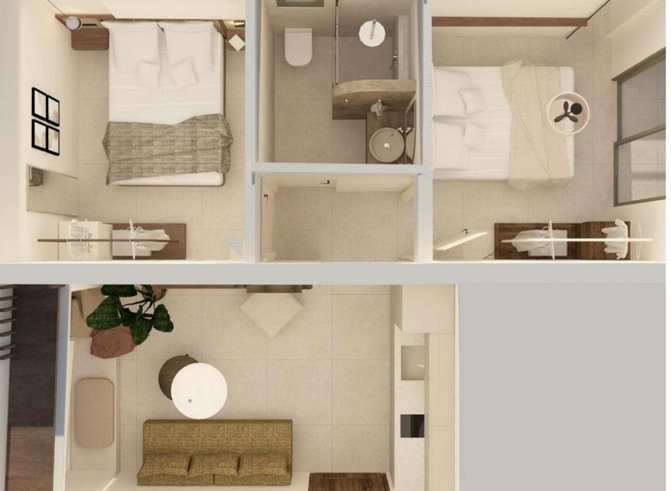 Deluxe Suite. This suite comes with 1 living room, 2 separate bedrooms and 1 bathroom with a walk-in shower and free toiletries. In the well-equipped kitchenette, guests will find a stovetop, a refrigerator, kitchenware and a microwave. Boasting a balcony with ancourtyard view, this suite also features air conditioning and a flat-screen TV. The unit has 3 beds. ;